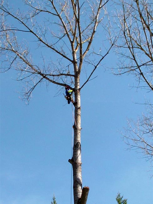 Les propriétaires, soucieux de leur sécurité, notamment celles de petits enfants, m’ont fait intervenir pour élaguer et démonter ce peuplier.