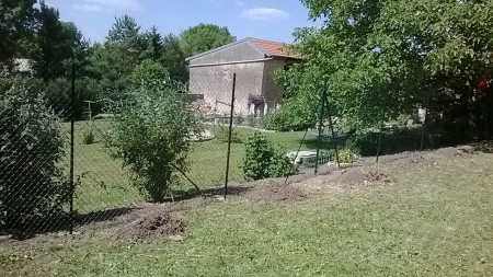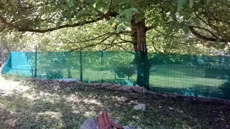 La pose du nouveau grillage réalisée (2 mètres de hauteur) donne un nouvel aspect à la mitoyenneté des deux habitations et permet à chacun des propriétaires de laisser s’ébattre librement tous leurs compagnons à quatre pattes.